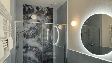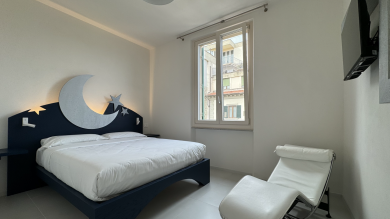 Camera composta da due camere comunicanti, ognuna con letto matrimoniale King size e a tema luna. Bagno interno con doccia.